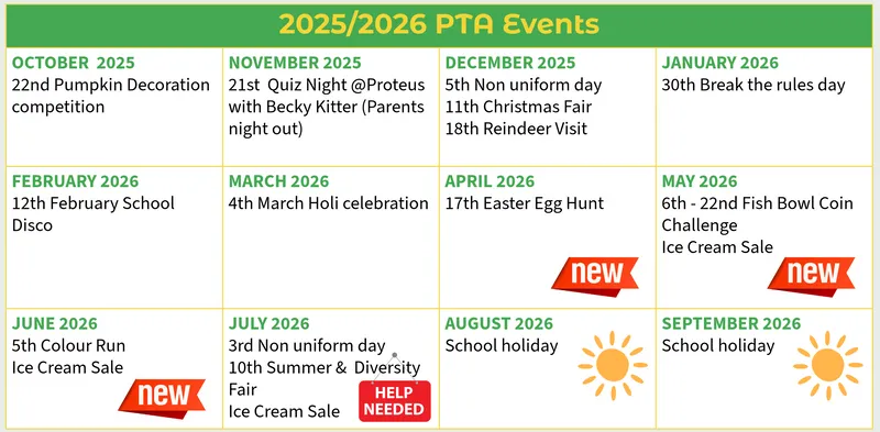 If you are new or haven't joined in before we would love to have you on board - please come to any PTA meetings throughout the year to find out what we have planned and how you can get involved.